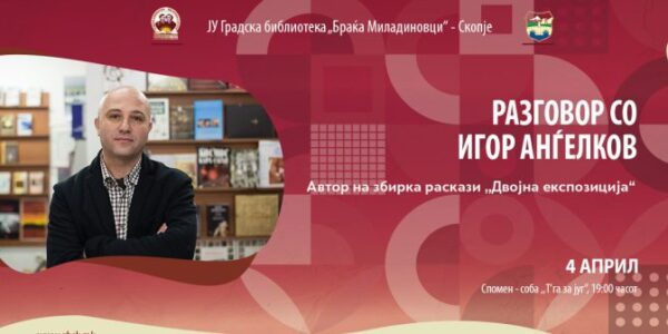 Утре (4 април) ќе се одржи разговор со Игор Анѓелков авторот на „Двојна експозиција“, книга на месец април во Градската библиотека „Браќа Миладиновци“ – Скопје. Разговорот ќе се одржи во спомен-собата „Т’га за југ“ со почеток од 19 часот, како…