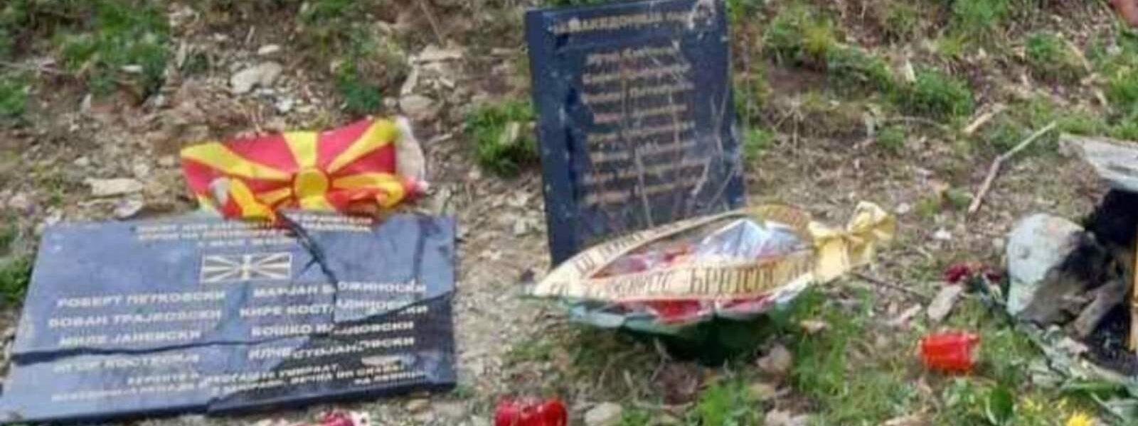 Имено, осквернавени се поставените плочи во чест на масакрираните бранители во Вејце од 2001 година, кои ги поставија лидерите на Левица, Апасиев и Крмов, но и другите присутни.