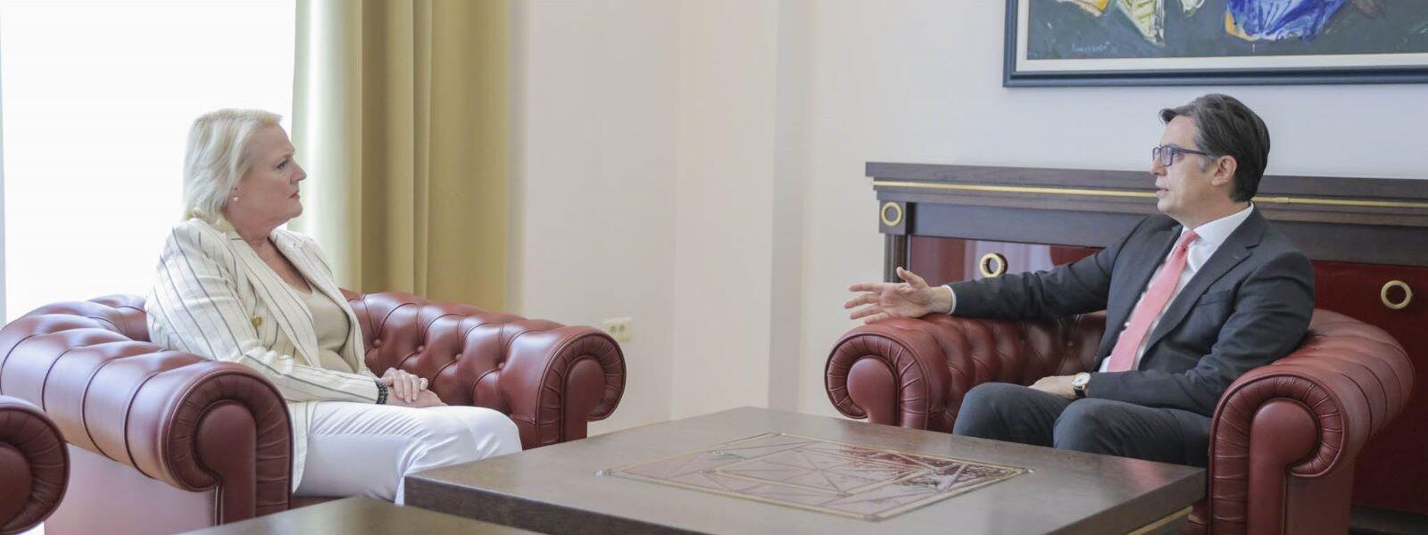 Претседателот Стево Пендаровски и амбасадорката на САД Анџела Агелер на денешната средба разговарале за пријателството меѓу двете земји и за евроинтегративниот пат на Македонија.