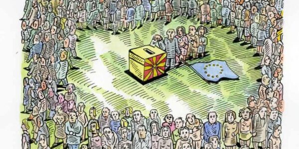Карикатура на Andrzej Krauze објавена во Guardian, 2018г за слабиот одзив на референдумот во Македонија за промена на името. На денешен ден, 2018, беше поразена фашистичка кампања за промена на име, идентитет и етноцид на македонскиот народ, платена со наши…