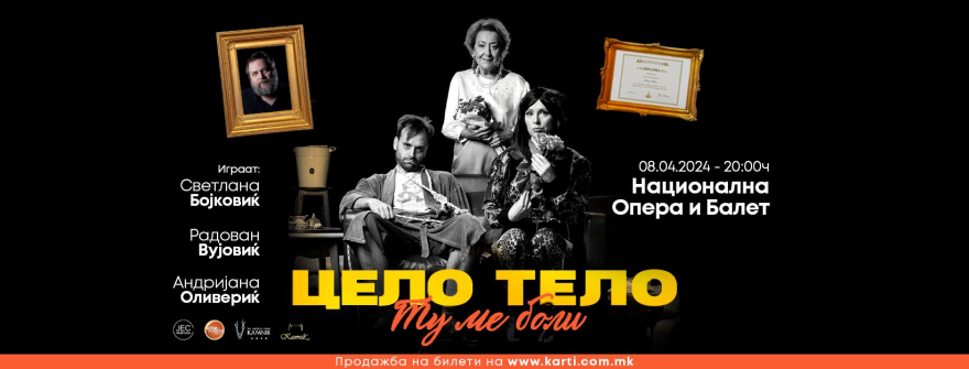 “Цело тело тука ме боли” на 8 април, Национална Опера и Балет во 20 часот.