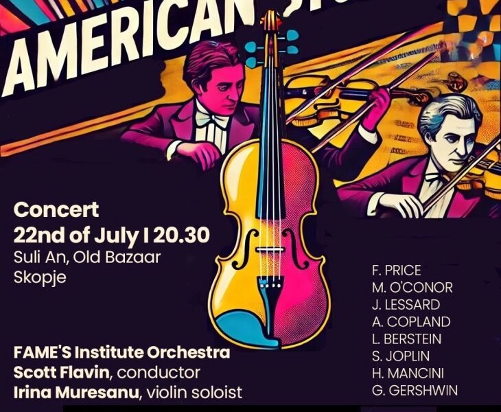 Во рамки на фестивалот „Скопско лето“, вечер од 20:30 часот во Сули ан концерт ќе одржи ФАМЕ’С Институт оркестарот насловен „Американска приказна“ на кој солистка ќе биде американската виолинистка со романско потекло Ирина Мурешану. Ќе бидат изведени популарни класични дела од американски композитори под водство на диригентот Скот Флавин од САД.