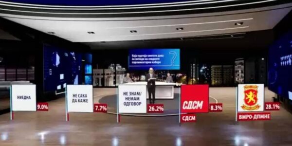 Анкета на МРТ 1: Голем број неопределени и двојна предност на ВМРО-ДПМНЕ пред СДСМ во ИЕ 1 и ИЕ 5